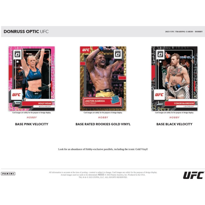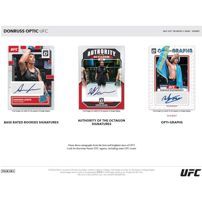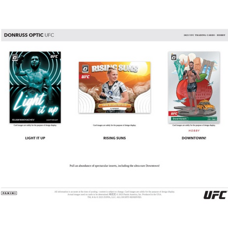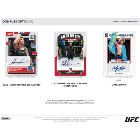 Each 2023 Panini Donruss Optic UFC Hobby Box contains 1 Autograph, and 20 inserts or parallels, per box on average!