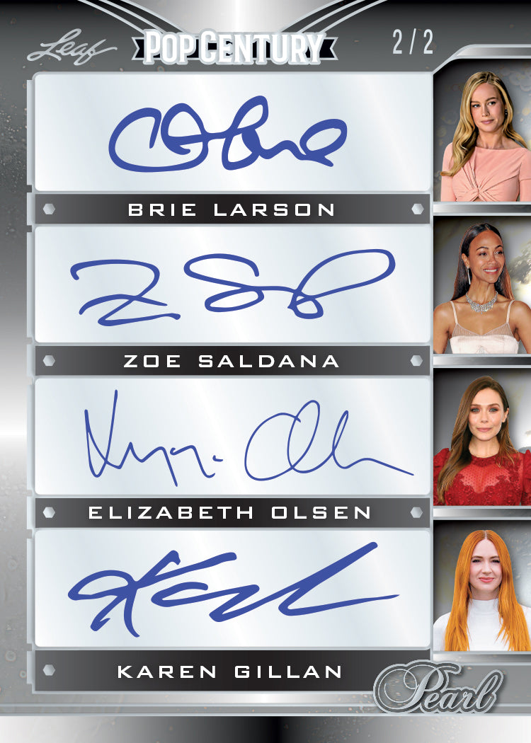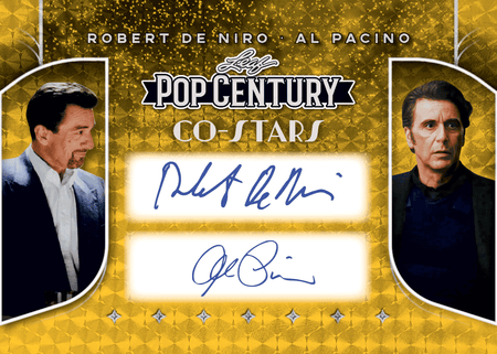 1 Pearl Signature in every case. 2 Multi-signed cards in every case. 2 on-card signatures in every case (new for 2025). 2 Signatures per case from the following names: Al Pacino, Anthony Hopkins, Ben Stiller, Brie Larson, Chris Hemsworth, Elizabeth Olsen, Cillian Murphy, Emilia Clarke, Gisele Bundchen, Halle Berry, Kate Beckinsale, Macaulay Culkin, Margot Robbie, Mel Gibson, Michael Douglas, Natalie Portman, Ozzy Osbourne, Paul Rudd, Sylvester Stallone, Robert De Niro, Benedict Cumberbatch, Chris Pine, Drew Barrymore, Helen Hunt, Marisa Tomei, Kevin Bacon and Ethan Hawke.