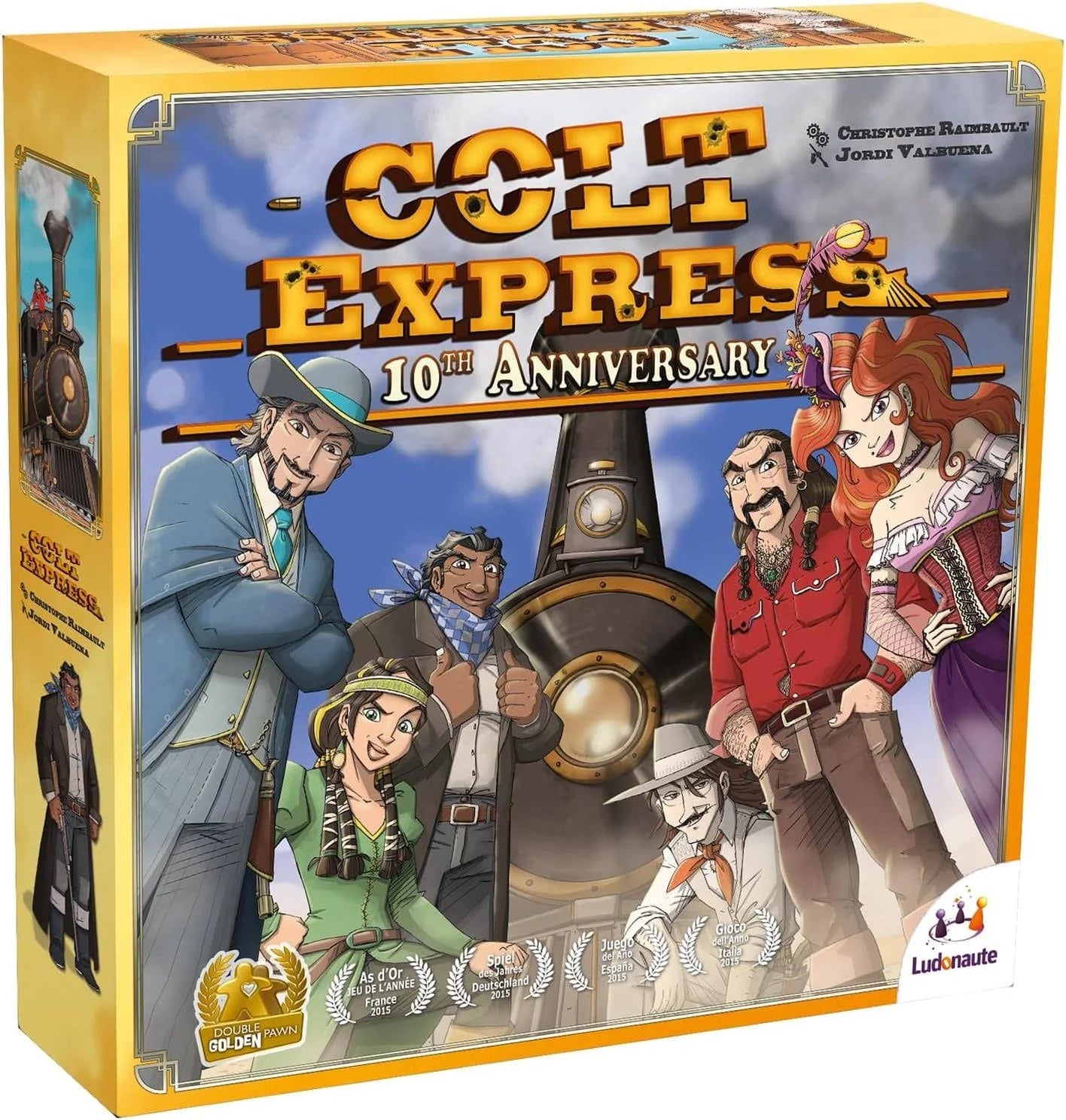 In Colt Express, you play a bandit robbing a train at the same time as other bandits, and your goal is to become the richest outlaw of the Old West. Will you succeed in stealing the suitcase holding a ton of money, despite it having been placed under the supervision of Marshal Samuel Ford? Fight off your opponents if you want to be the one leaving this train with the money…alive!