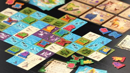 As an intrepid investigator of all things idiosyncratic, your job is to explore the island and document these fantastic creatures. On your turn, explore by placing a terrain card somewhere on the island (with the ability to cover up previous terrain!).