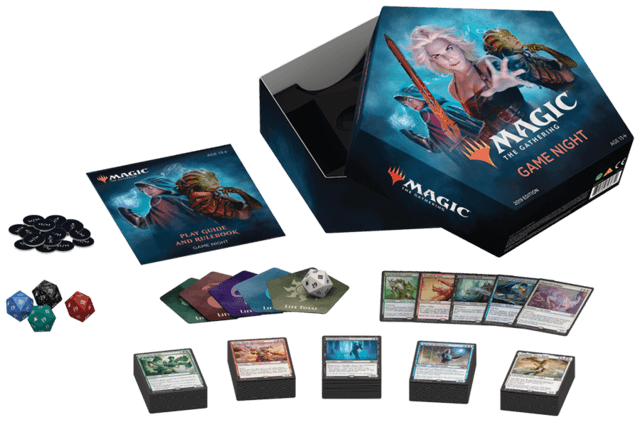 Game Night is a portable, accessible, social Magic experience. It's perfect for board game meetups, or any invested Magic fan who wants to share their hobby with uninitiated friends - a way to introduce Magic in the familiar form of a board game.