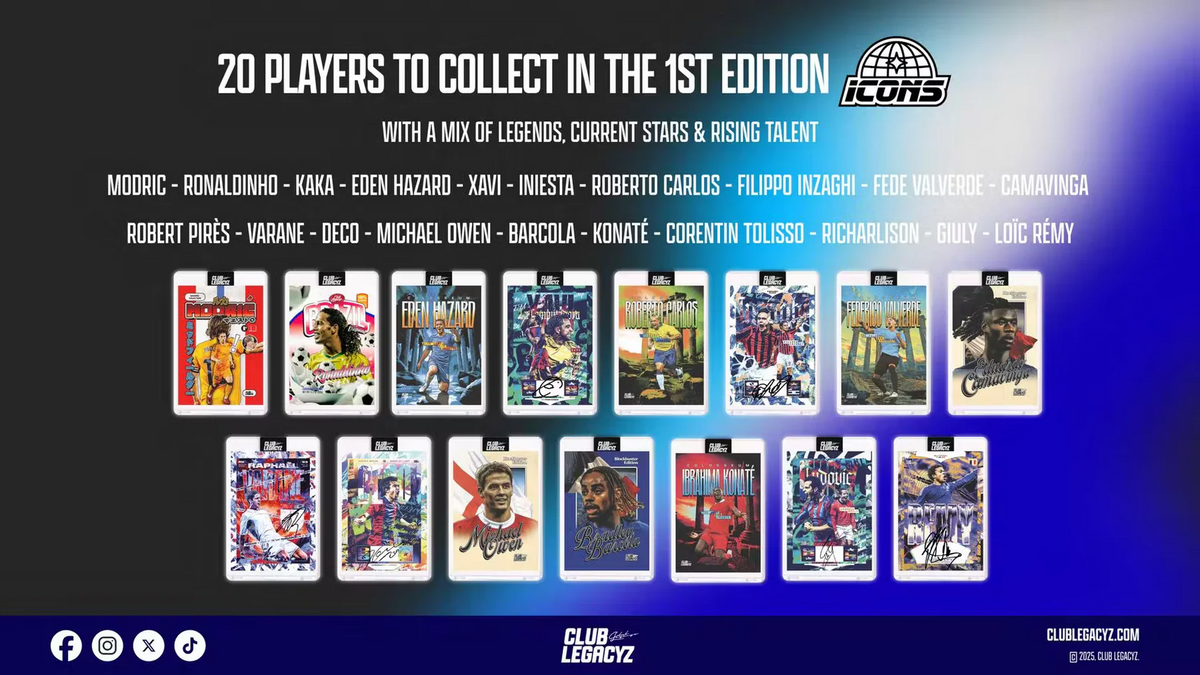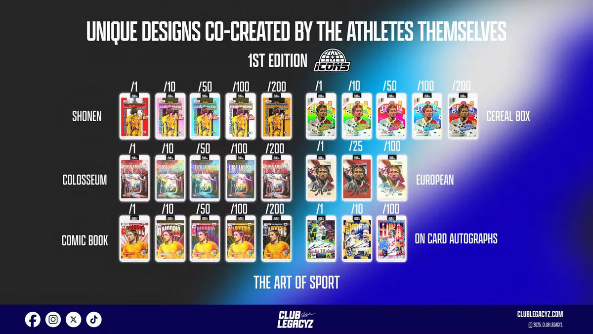 2025 Club Legacyz Icons 1st Edition Soccer Cards delivers (3) Limited Edition Cards, max #'d to 200 in Every Box!