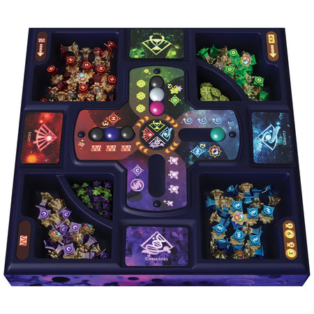 In Crafting the Cosmos, you are interstellar architects, competing to build the galaxy – one star at a time. Manipulate the laws of the universe to your advantage, shifting gravity or the flow of time to activate useful power cards, and even spawn advanced life that can earn you extra victory points at the end of the game. Use your resources wisely as you craft your cosmic creation.