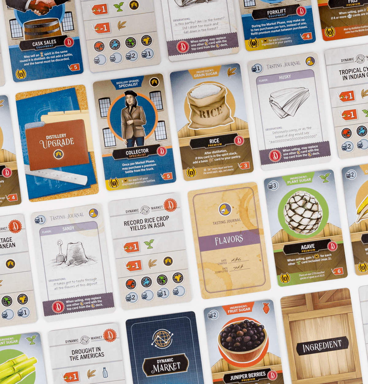 Fun Flavors and Upgrades: We've added four new unique flavor cards (with a special effect!) and four new, advanced-level Distillery Upgrades to add a bit more crunch to your engine building.