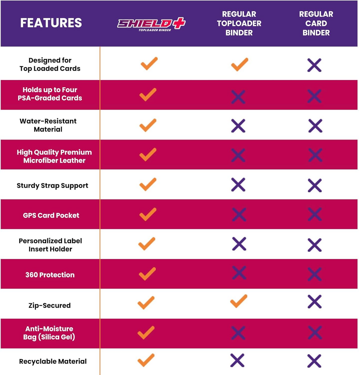 THE COLLECTOR’S CHOICE: Specially made for trading card collectors, our Shield+ toploader binder is a combination of protection, function, and style, making it the perfect case for your cards.