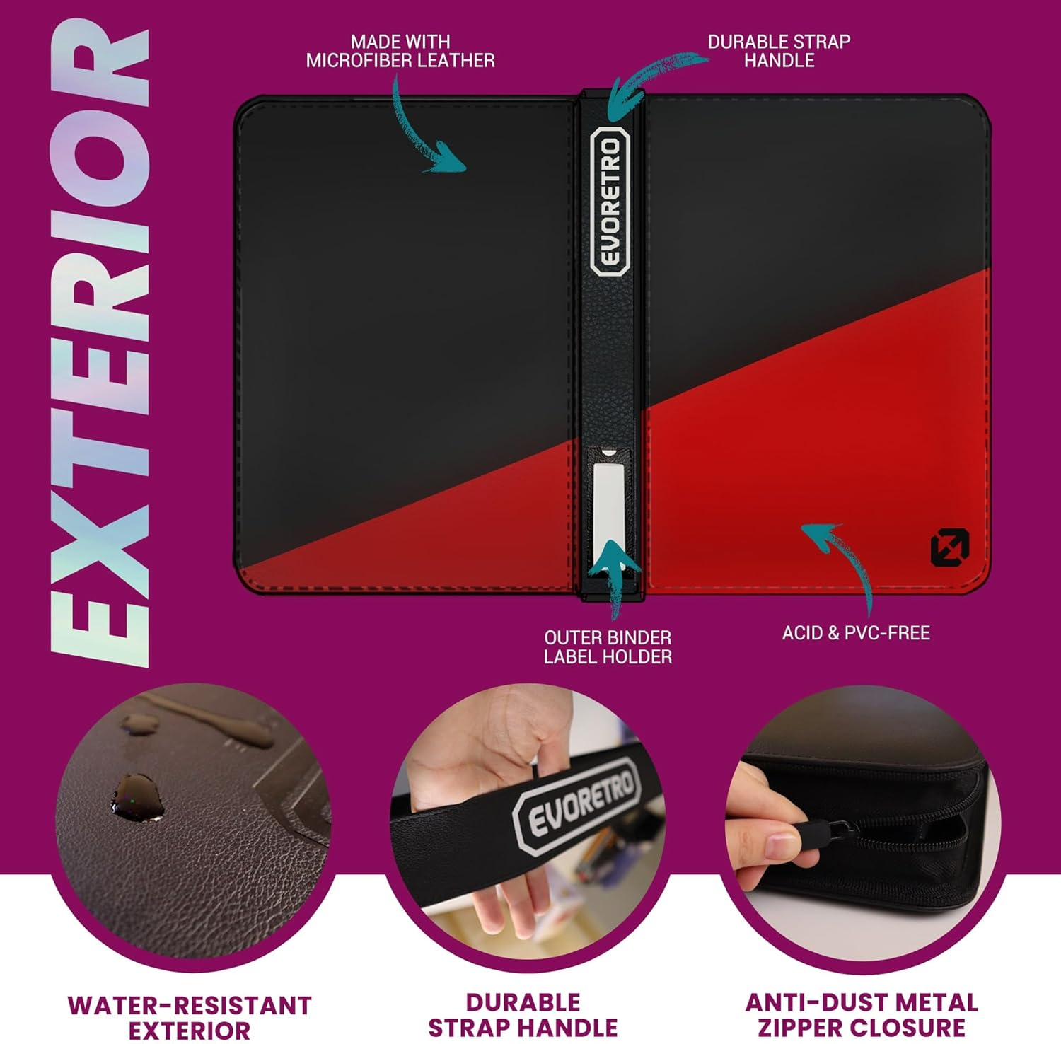 Evoretro - Zippered 9-Pocket Shield+ Toploader Binder - Black/Red