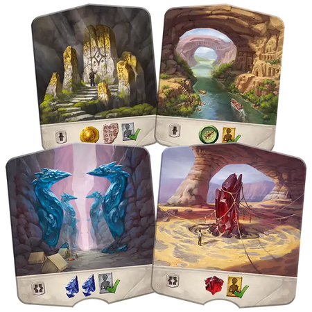 Explore undiscovered regions of Arnak! Twisted Paths is the final major expansion for Lost Ruins of Arnak. It brings a new double-sided map that’s bigger than the one in the base game—and each side comes with its unique layout, research track and temple, and also its own new mechanisms and components (like brand new temple tiles or new resources—dark tablets). Youcan choose to explore the day side of the map and scale the Owl Temple—or brave the night and journey through the dark caverns of the Spider Temple!