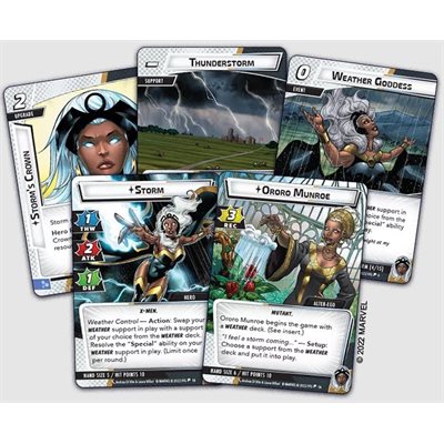 For players eager to challenge Magneto and his Brotherhood of Mutants, they can get started with the Storm Hero Pack! This expansion comes with a 40-card pre-built deck, giving players the chance to start playing right out of the box.