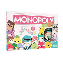 Squad up with the plushiest version of the classic family game you’ll ever play! MONOPOLY®: Squishmallows Collector’s Edition lets players buy, sell, and trade their favorites from the Classic Squad to the Fantasy Squad, including Fifi the Fox and Benny the Bigfoot! This special edition comes with an exclusive 4” Cam the Cat plush to start off your journey, plus custom tokens that represent Squishmallows fun. Set up valuable Squads and Collections to be the last one with Squishcash to win!