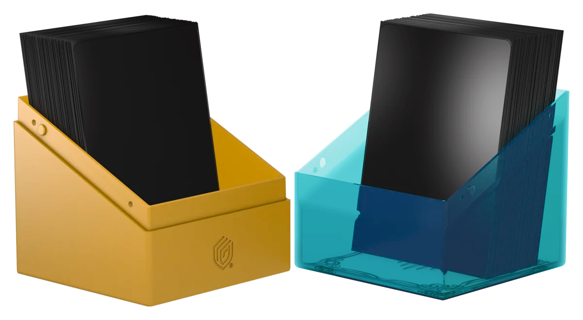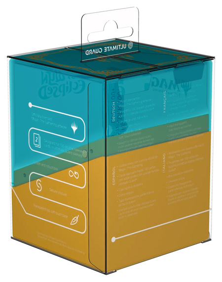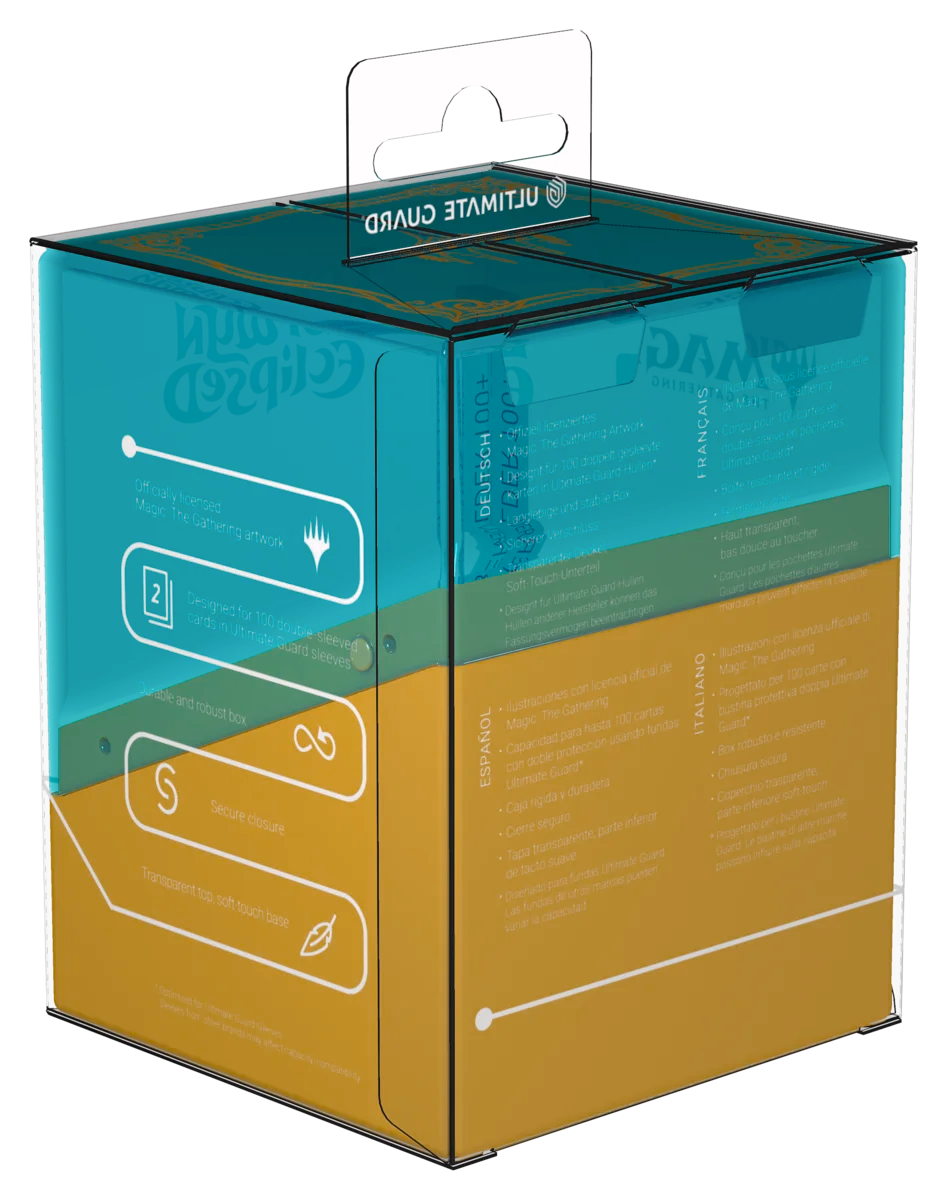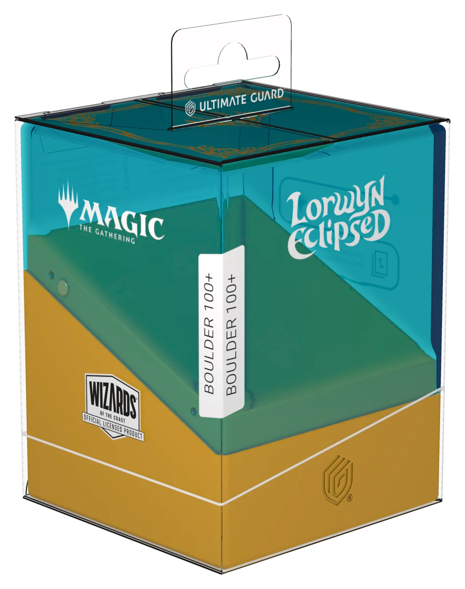 The Boulder 100+ is a durable and rigid deck box with a secure closure that can hold up to 100 double-sleeved or 120 single-sleeved cards in Ultimate Guard Sleeves. Both the completely transparent top of the Boulder and the solid bottom part are printed with officially licensed art from Magic: The Gathering’s upcoming set "Lorwyn Eclipsed".
