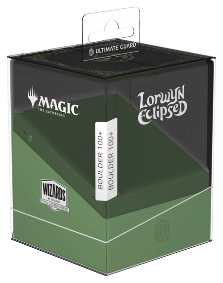 The Boulder 100+ is a durable and rigid deck box with a secure closure that can hold up to 100 double-sleeved or 120 single-sleeved cards in Ultimate Guard Sleeves. Both the completely transparent top of the Boulder and the solid bottom part are printed with officially licensed art from Magic: The Gathering’s upcoming set "Lorwyn Eclipsed".