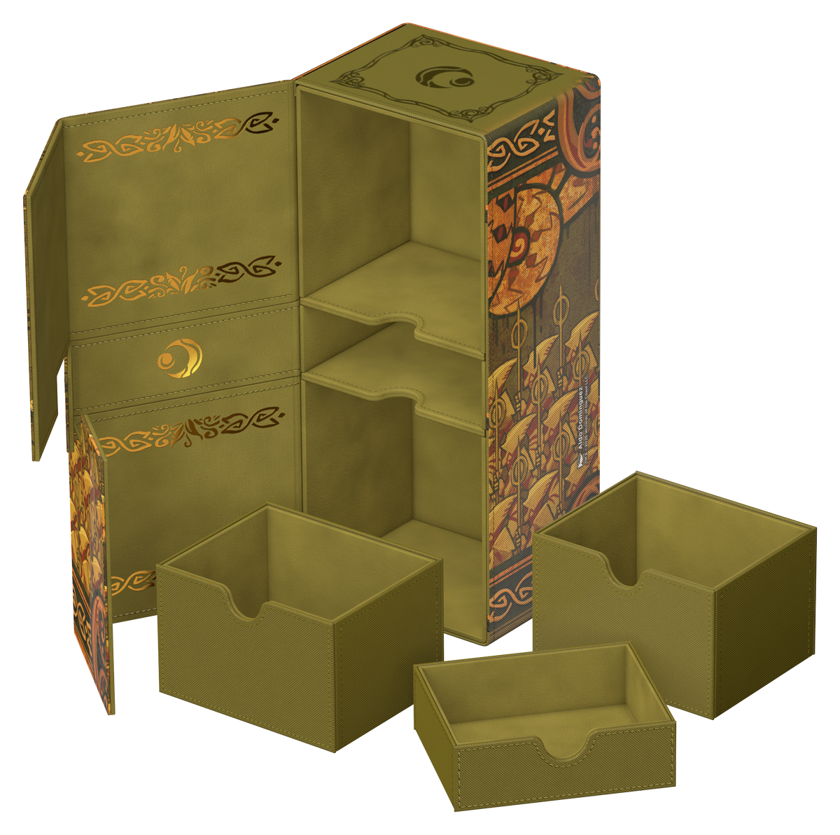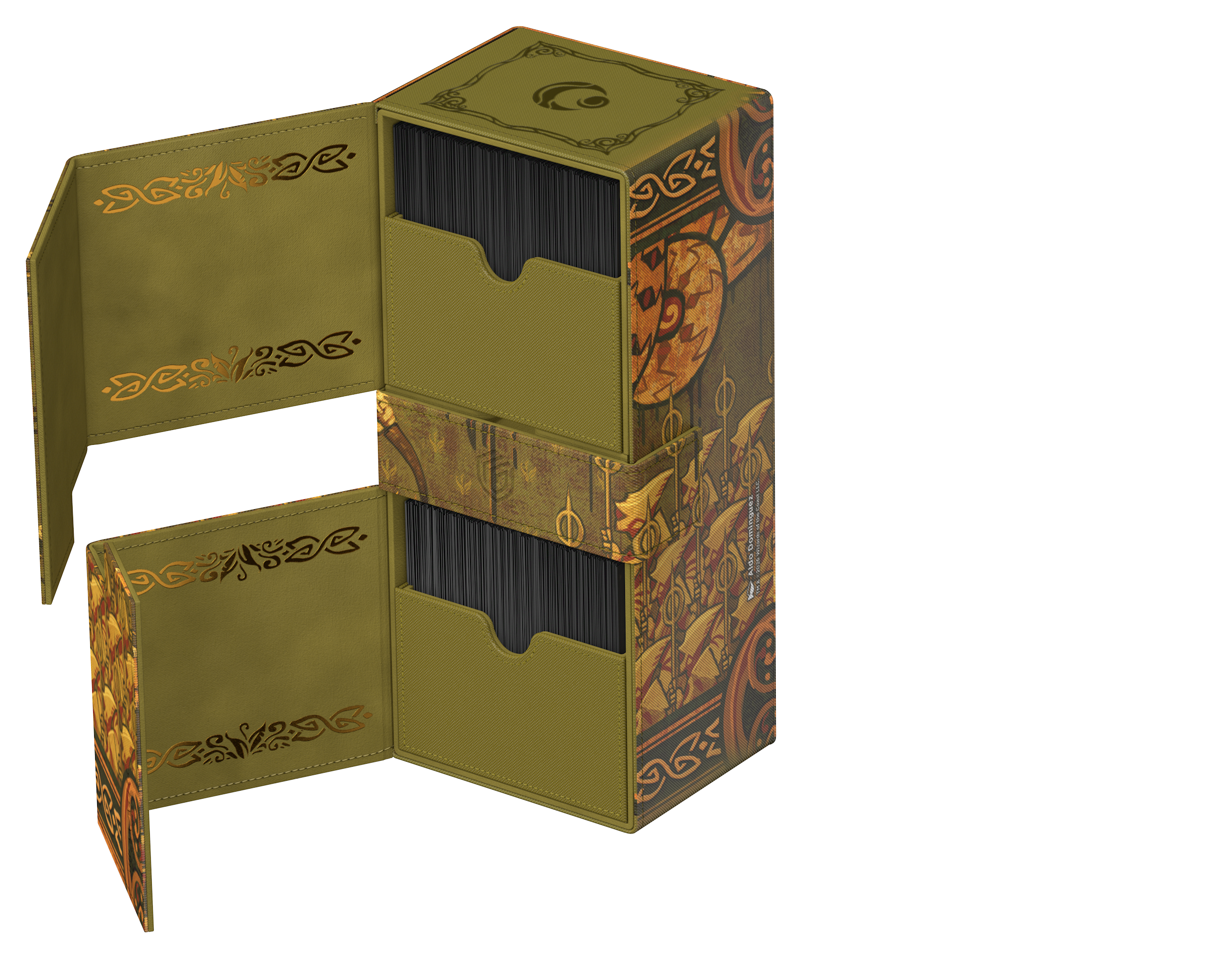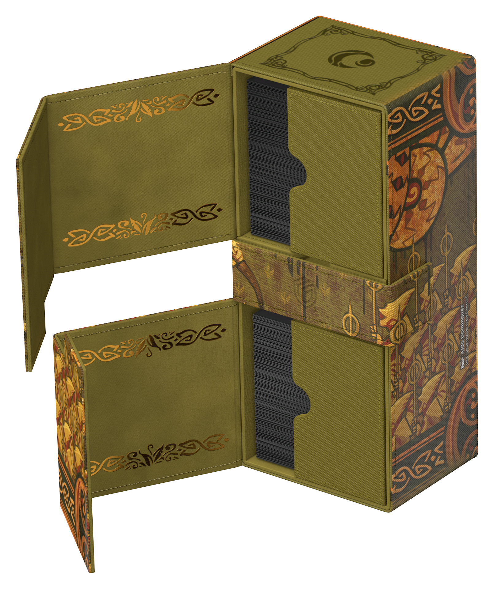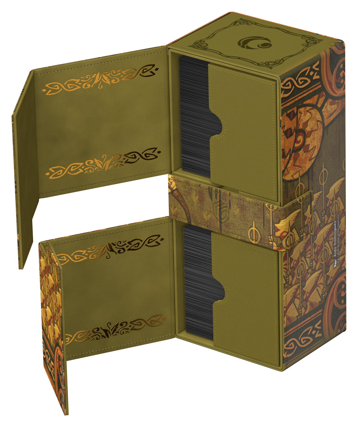 Ultimate Guard’s Twin Flip’n’Tray 266+ Xenoskin is a premium MTG deck box featuring two independently accessible compartments for 133 double-sleeved cards (in Ultimate Guard sleeves*) each, plus an additional removable tray for dice and accessories. Perfect for Magic’s Commander/EDH format, the Twin Flip’n’Tray is printed with officially licensed artwork from Magic: The Gathering’s “Lorwyn Eclipsed” set and offers extra space for additional cards and tokens. The deck box’s durable Xenoskin material, high-quality microfiber inner lining, and strong magnetic closures guarantee exceptional card protection. Designed to combine with other Ultimate Guard products, the Twin Flip’n’Tray can hold two Boulder 100+ deck boxes when the card trays are removed.