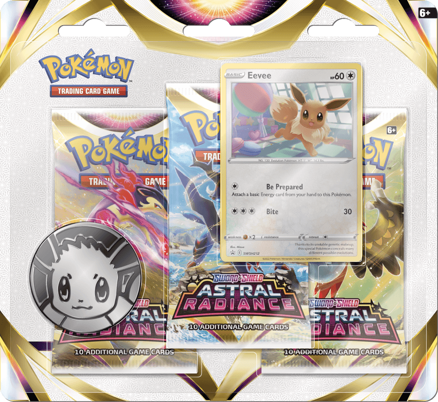 Each Pokemon Astral Radiance Eevee 3 Pack Blister includes 3 booster packs and more!