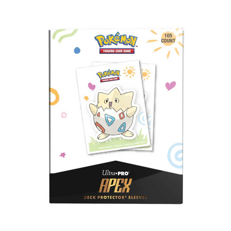 The 105ct APEX™ Deck Protector Sleeves for Pokémon TCG are made with our new easy-shuffle formulation and feature vibrant artwork of Togepi among a joyous scene of colorful doodles on a textured back. Archival-safe polypropylene materials ensure you can sleeve your cards with confidence, and the gloss clear front allows your foil cards to shine! Sized for standard size trading cards measuring 2.5 in. x 3.5 in.