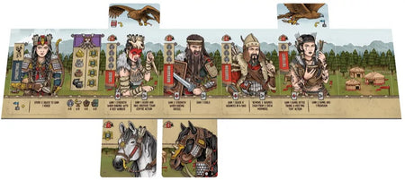 The aim of Raiders of Scythia is to be the player with the most Victory Points (VP) at the game’s end. VP are gained by raiding Settlements, taking Plunder and completing Quests. Players will need to assemble a Crew, train Animals and gather Provisions. The game ends when there are only 2 unraided Settlements or 2 Quests remaining on the Main Board.