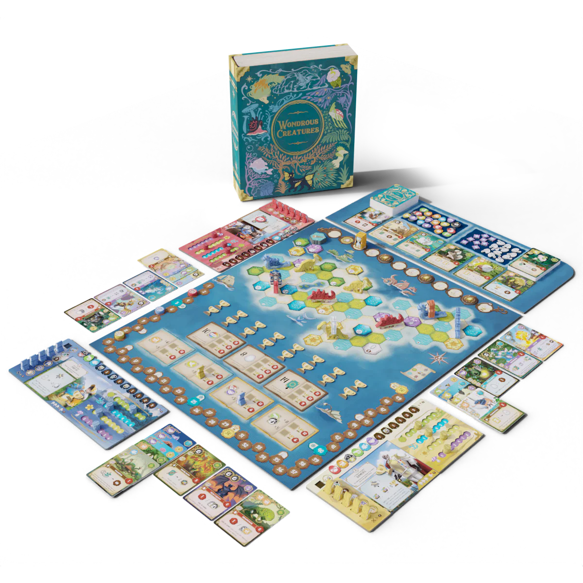 - Unique Worker Placement: Wondrous Creatures' worker placement mechanism provides an intriguing Hex Puzzle experience. Your deployed worker interacts with surrounding icons to bring in resources or cards, and works to activate special effects!